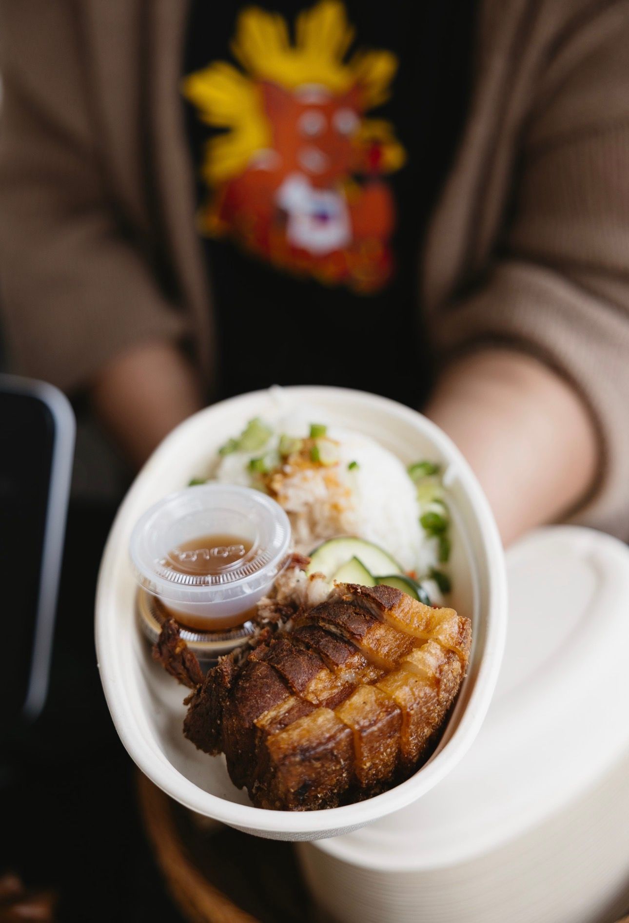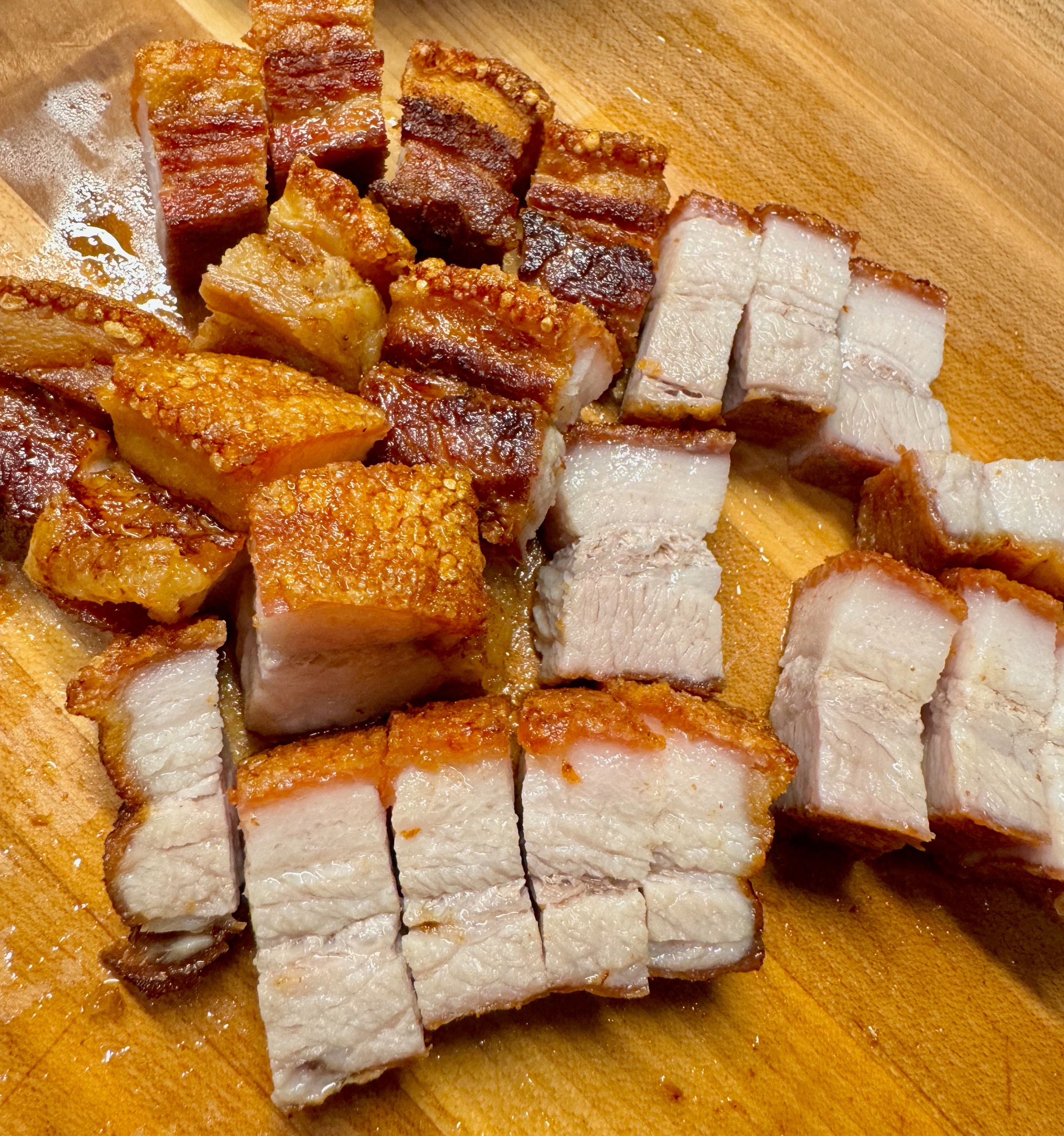 Tender pork belly with crispy skin.